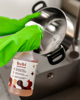 Odmasťovač Bubi je superúčinný a silný čistiaci prostriedok, ktorý sme vyvinuli na základe viac ako 25 rokov profesionálnych skúseností. Jeho unikátne zloženie sa už úspešne používa v reštauračných kuchyniach, takže si môžete byť istí, že rovnako dobre funguje aj u vás doma. Rozpúšťa mastné, olejové usadeniny zo sporákov, grilov a iných povrchov bleskovou rýchlosťou - ani tá najodolnejšia špina nemá šancu.